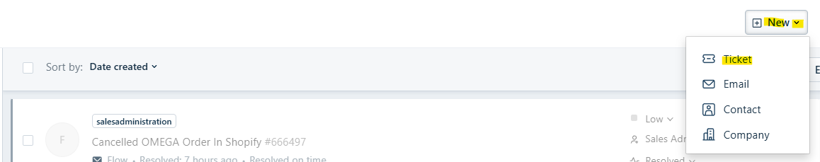 -Click Dropdown & Select "Ticket"