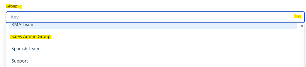 - Click Drop down & Select "Sales Admin Group"