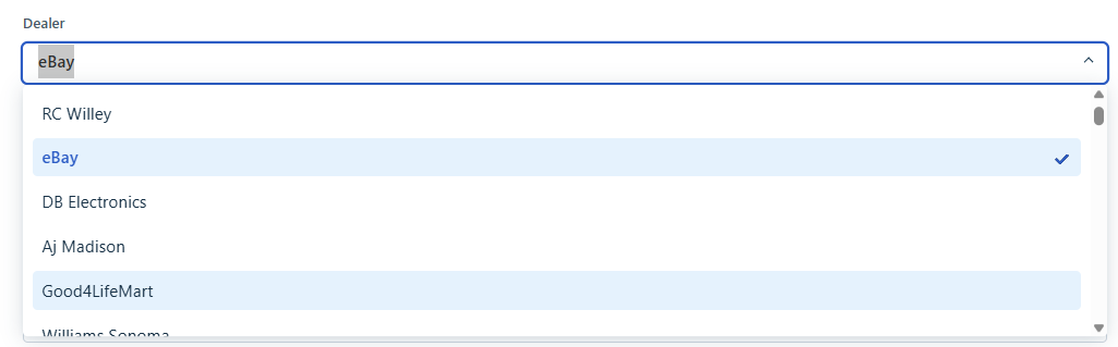 - Click Dropdown & Select the dealer