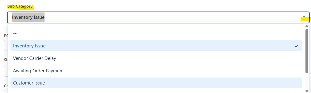 | What do I need to do prior to "Resolving" the ticket | Important: Order Status Field -Using drop down select the option that describes the outcome of the PO ![]() | Important: Be sure all required side carts are filled out (Completed) |