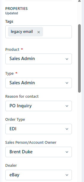 | What email address do I enter when creating the ticket? | salesadministration@thelegacycompanies.com | * |