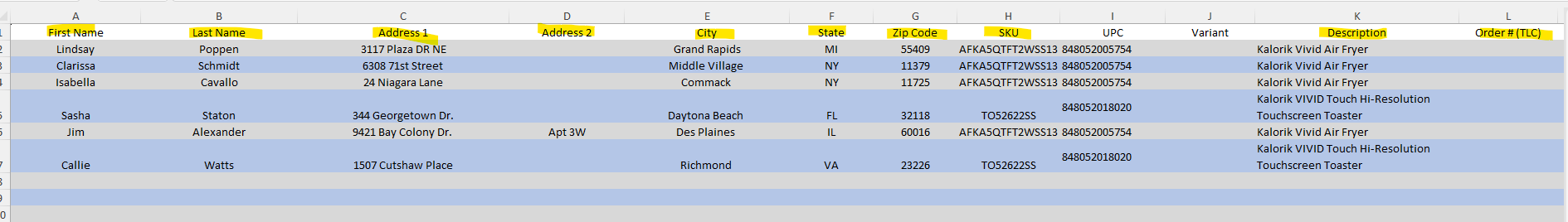 1B- If attached is a: Excel file: (Multiple orders shipping to multiple addresses)