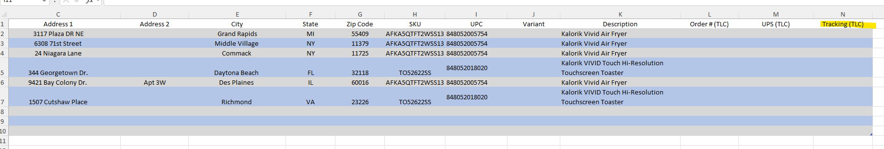 Sample Order- Excel File -Providing Order Tracking Numbers Confirmation![]() | PDF Excel file with many orders you have processed "ONLY" -Providing M3 Order tracking's |