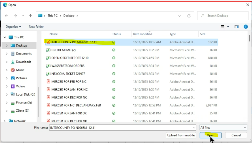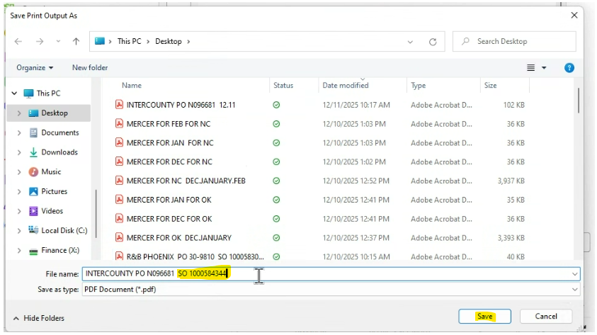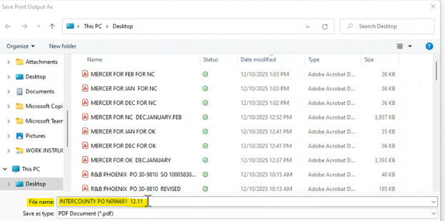 How to Save Customer PO to PDF to attach to the M3 Order: