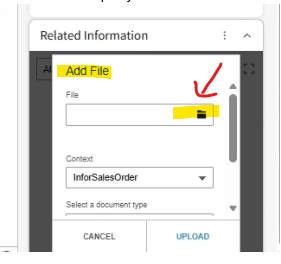 Scroll down to Related Information to -In File field: Click the Paperclip Symbol