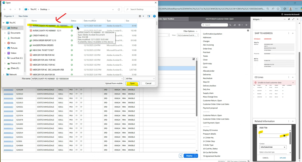 - Saved (& Renamed file) Customer PO PDF -> Must be attached to M3 Order