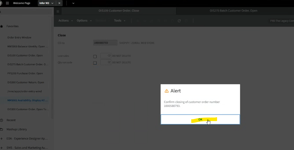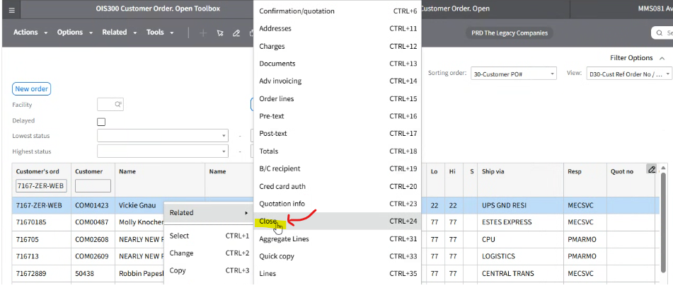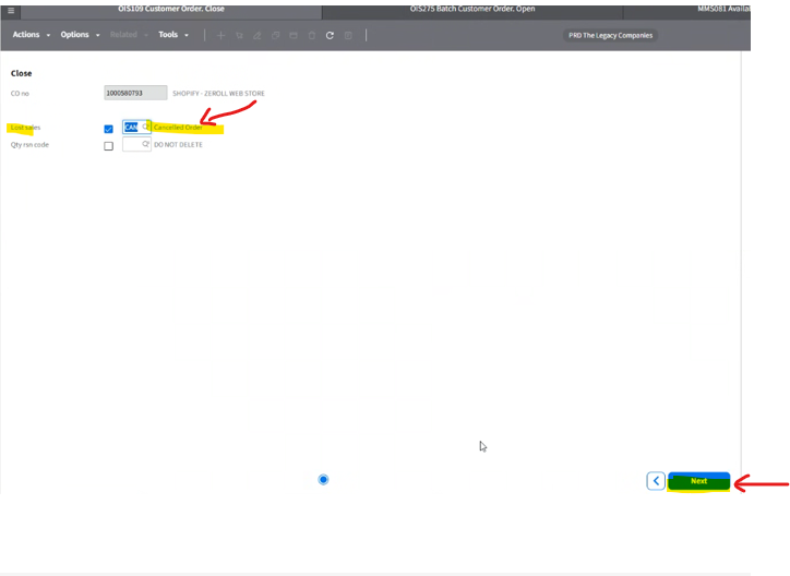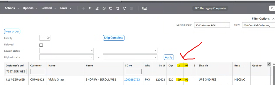 - The Order Status will reflect (LO & HI) -> status 99 (Your Order is now cancelled)