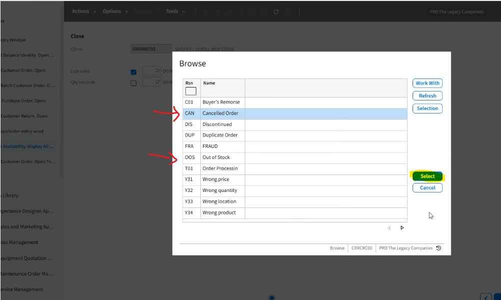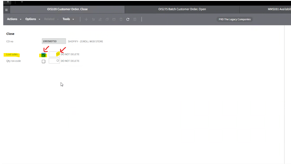 2. Request to cancel a Product Line --> The Product line you are cancelling must reflect status 99