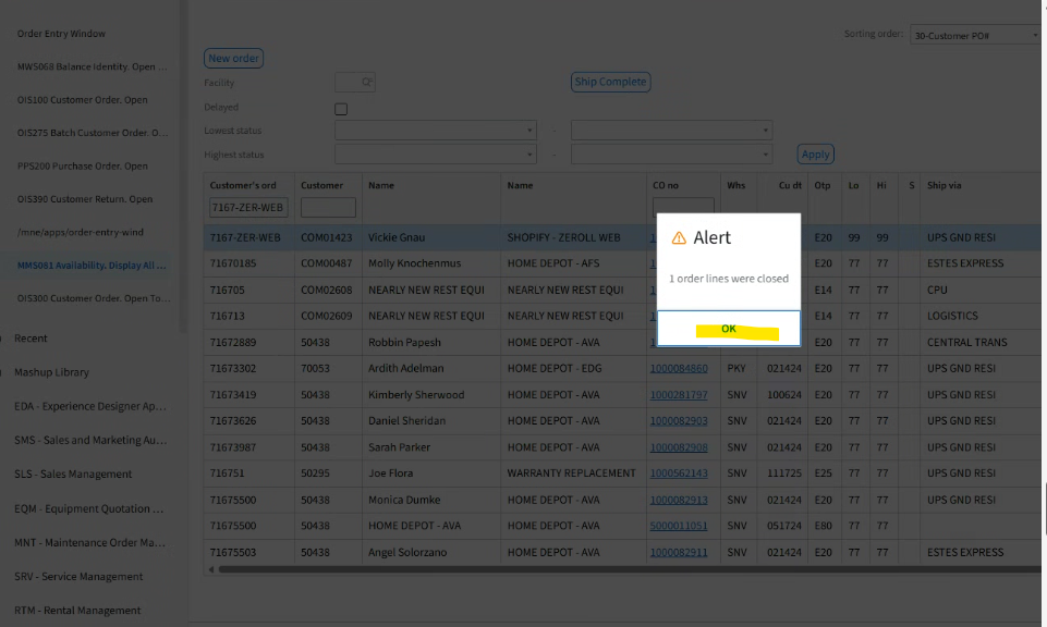 1. Request to cancel full order -> Hi/Low will need to reflect 99