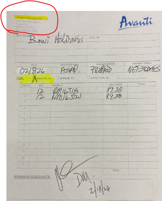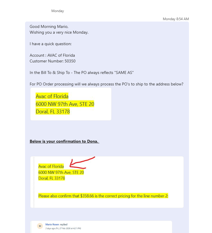 3/2/2026: I reached out to Mario asking if we always process PO's to the address below .