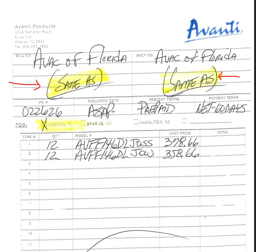 The PO's always Same in the SHIP TO & BILL TO --> Mario writes "SAME"