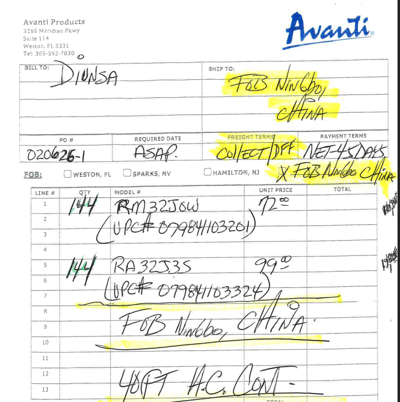 | 50818 | DIRECT APPLIANCES CORP | Export | Mario Rosen | Net 30 | PPD | Logistics | Logistics | Amanda Advised Confirm ship to address with Mario if not specified |