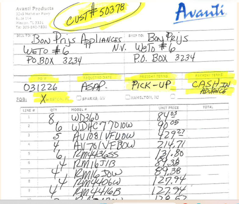 | Ship Via : Our Truck" | This represents order is a CPU (Customer Pick Up) | (Scroll down article to see PO sample) |