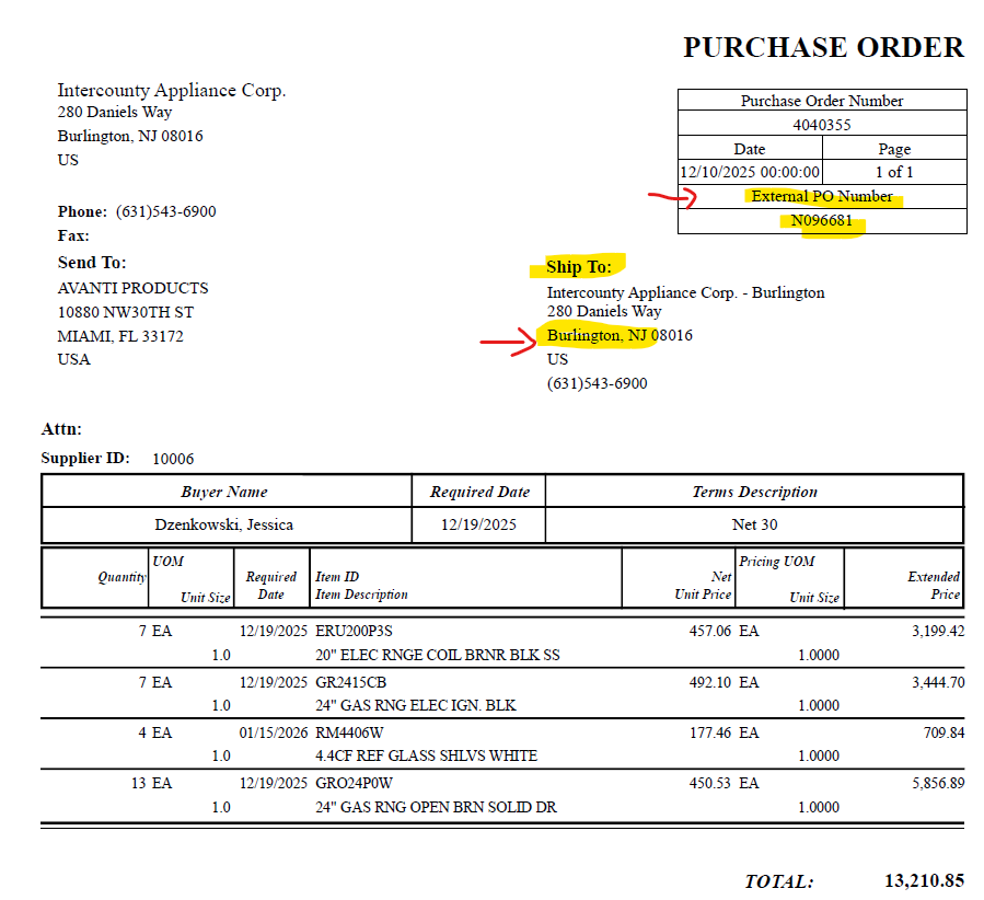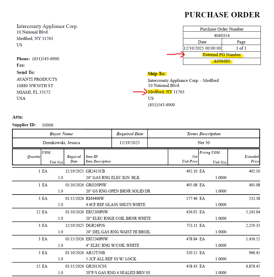 | Intercounty Appliance Corp. | M3 Customer ID: 50332 | ||