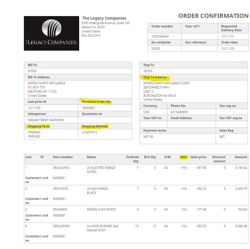 Revision 12/23/2025: Adam Advised moving forward the Only Selected warehouse is" HNJ