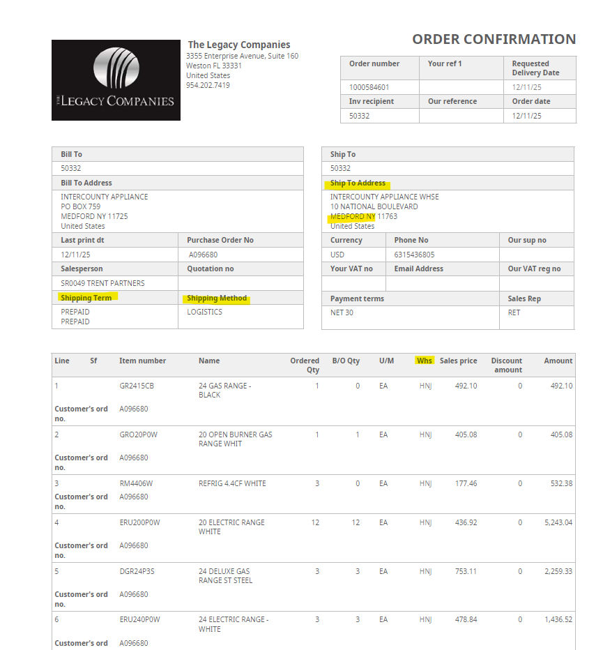 | PO consists of 1 or more items are Out of Stock in All Warehouses | 1. Proceed with processing order -WHS: Select "HNJ" -All Product Lines: Select "HNJ" -Place Order in Stop Code 7 Note: -Order Status for product OOS will reflect : Status 22 -Product Line/Lines for product OOS will reflect : Status 22 (Back Order) | Reach out to Amanda/Nely in Ring SA Group chat for approval and ask how to proceed -Provide Ticket # -Provide Order # & Details |