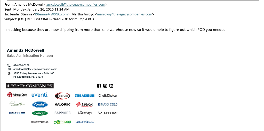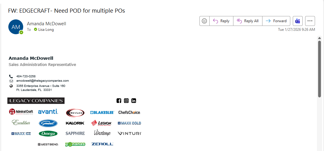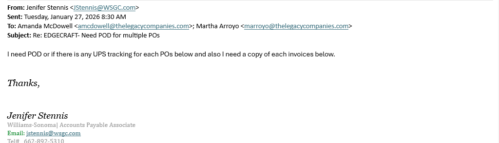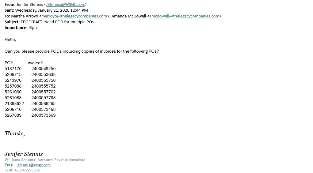 Below is the email Amanda sent to me for POD's to be pulled the enclosed invoices below