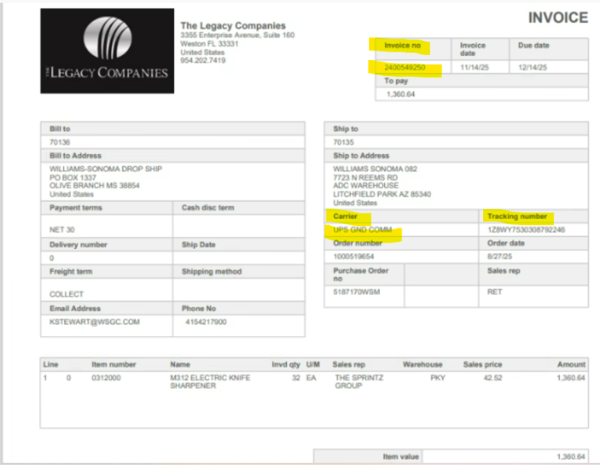 -Click until you locate the invoice number for that PO (If invoice is not located , check to see if there is a secondary order for this PO)