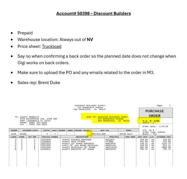 OP360 Sales Admin Discount Builders SOP - Gigi's Account