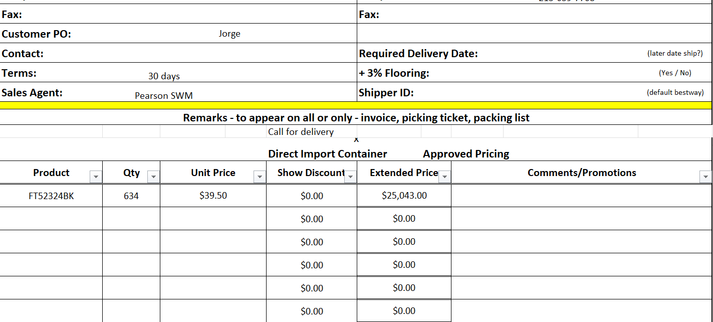 If PO pricing does not match current price sheet, please email sales rep for confirmation on discrepancy.