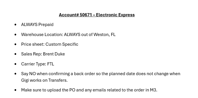 | Back Order Pop-Up Box | Always Select "NO" | |