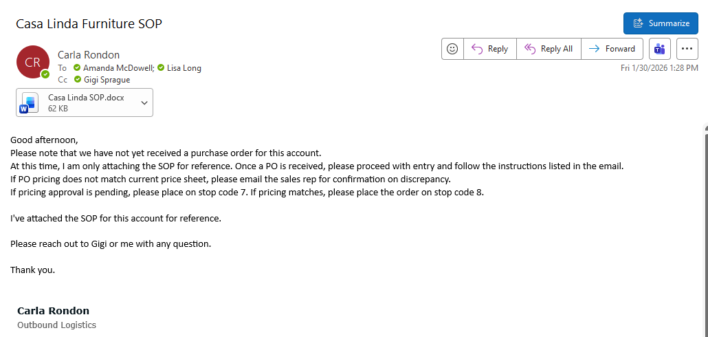 1/30/2026: Account was transitioned over to SA Group to handle order processing