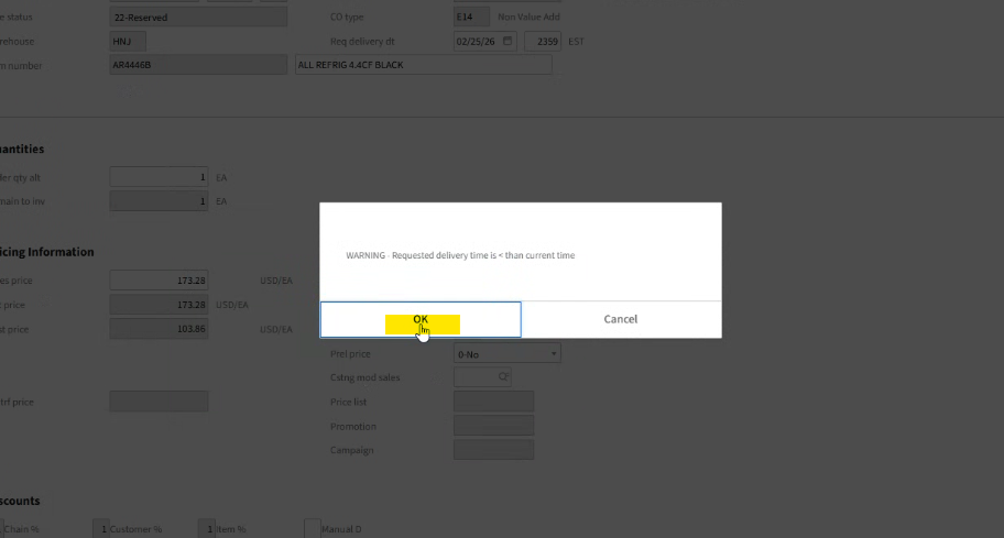 | When can I NOT change an order -OR- an order line/lines | If the Full order lines are showing status 66 or 77 | You will only update order / order lines in status: 22 (Back Order) 33 44 99 (Cancelled/Deleted) |