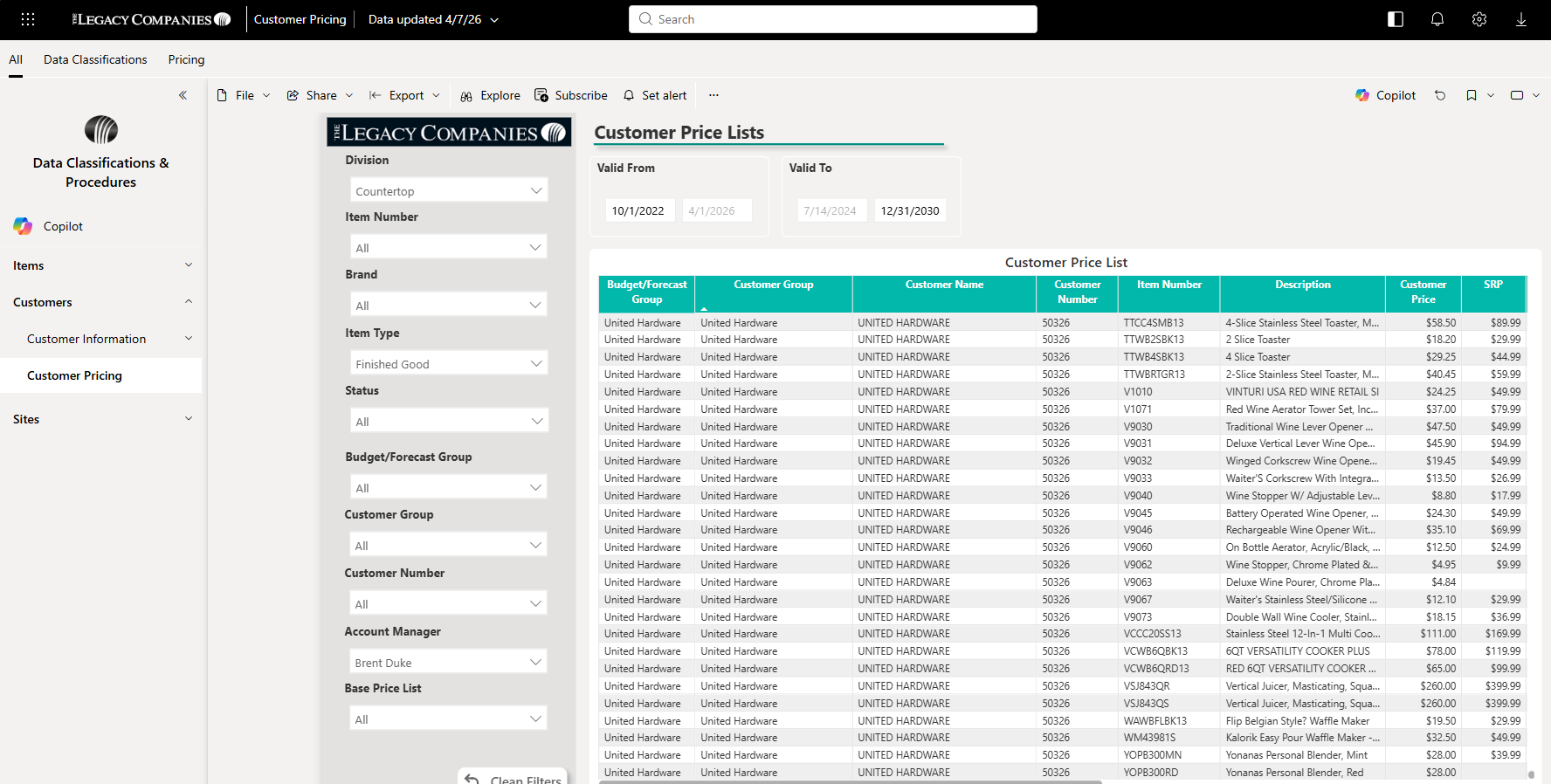 BI_Customer Price Lists - Power BI
